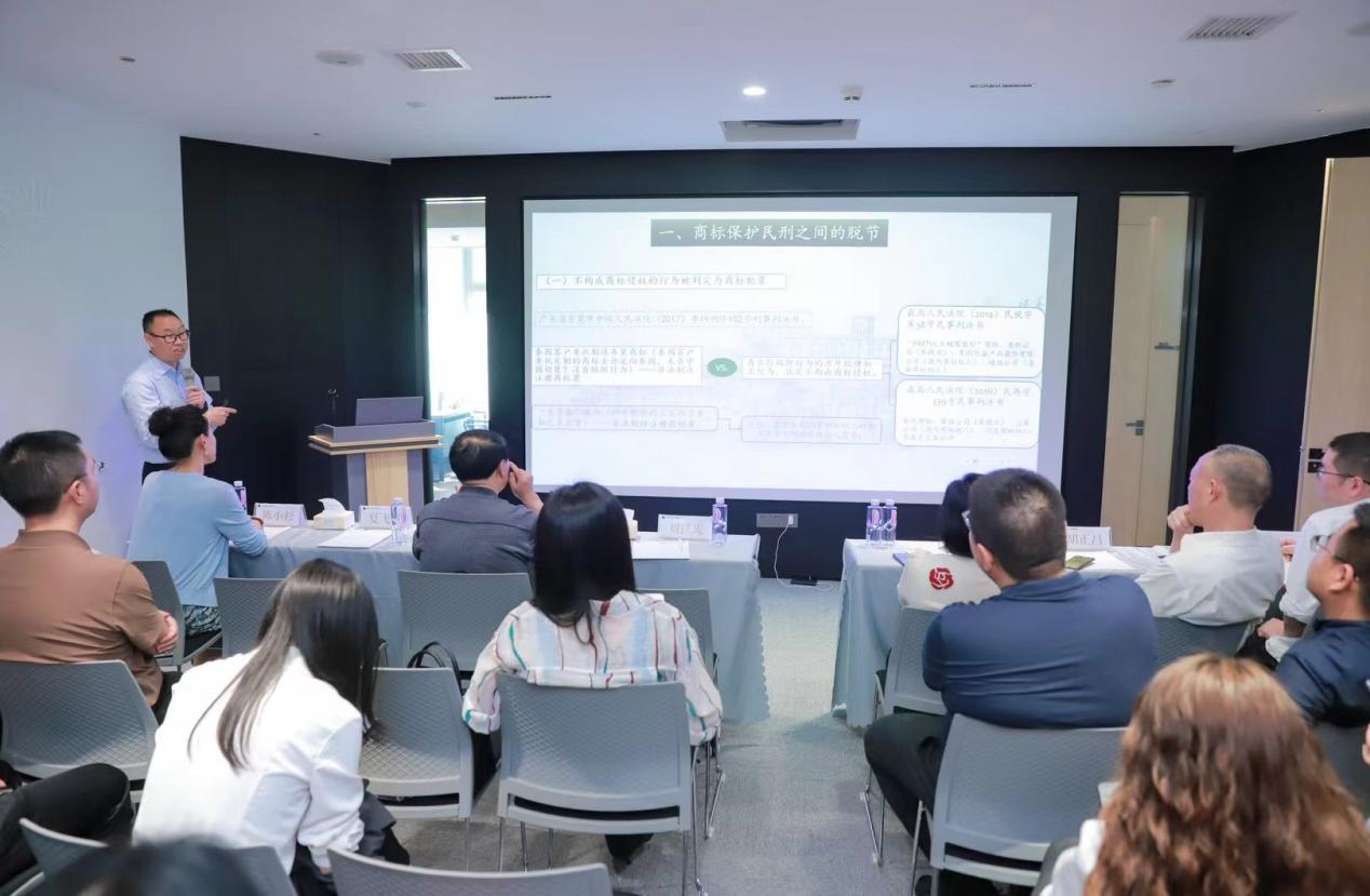 授牌仪式结束后,马贤兴教授为我们带来主旨演讲《知识产权刑法保护的价值取向——兼论刑法第213、214的关系》,马教授深入剖析了知识产权刑法保护的价值取向,以及刑法第213、214条在实际案例中的应用和关系,为在座的律师和学者们提供了新的思考角度。随后,刘铁光教授为我们带来主旨演讲“商标保护民刑之间的衔接”。刘教授从商标侵权案件入手,详细阐述了商标保护在民事、刑事法律框架下的衔接与运用,为我们在实际工作、学习中更好地协调二者关系、提高保护效果提供有益的参考。