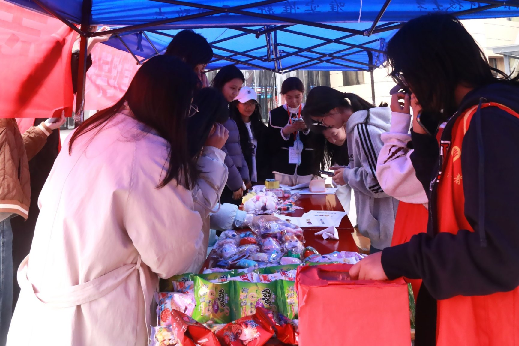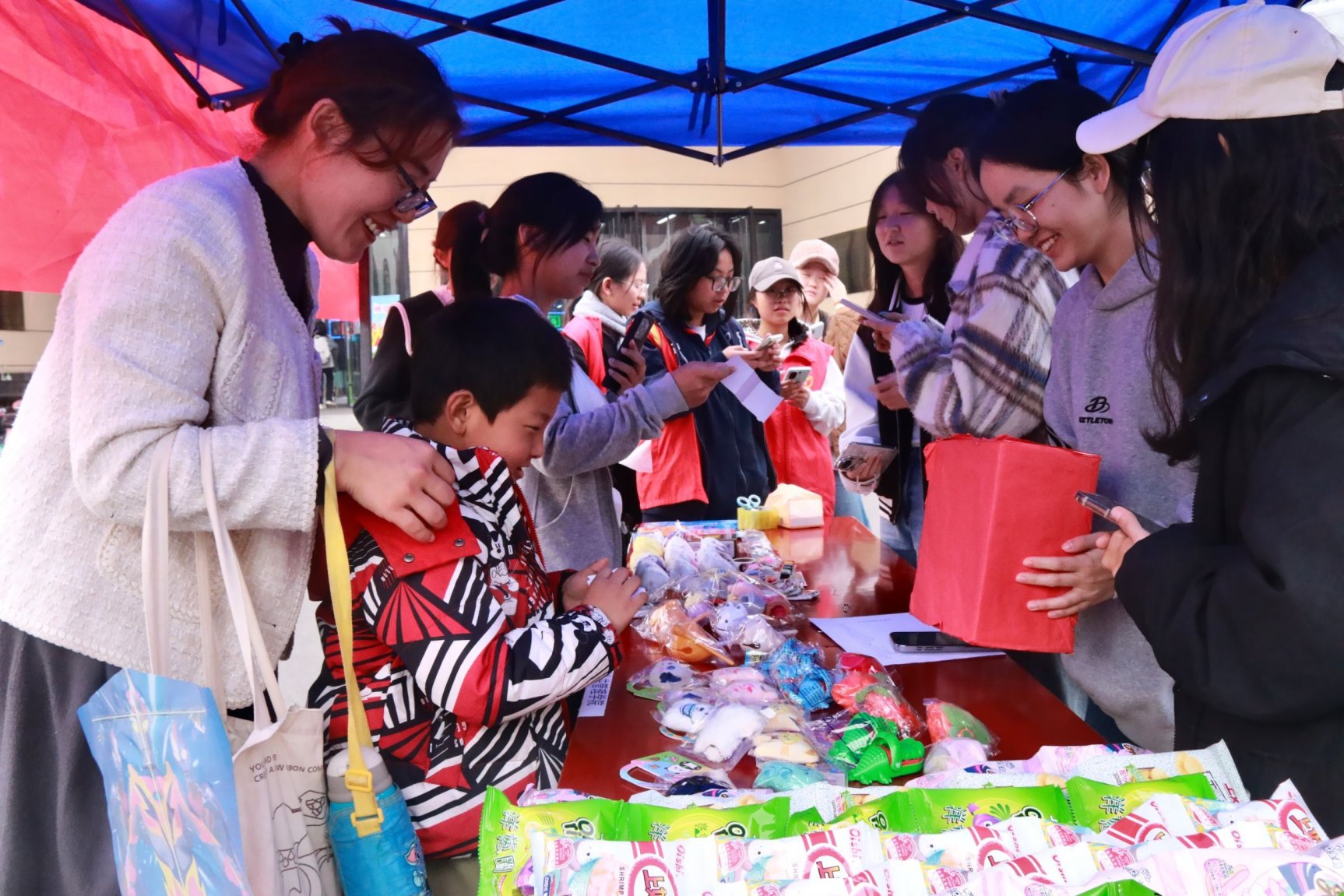 活动现场,“你画我猜”和“emoji猜词”两大趣味板块吸引了许多同学驻足。志愿者们细心引导大家分组入座,逐一讲解游戏规则;心健部的同学们穿梭其间,分发物资、协调进程,忙而不乱。同学们手持彩色参与卡,或俯首专注涂画,或聚神破解符号谜题,不时迸发出恍然大悟的欢笑与掌声。随着通关印章一个个盖满,不少同学顺利兑换到了卡通木鱼、三丽鸥捏捏乐等小礼物,更在主题背景板前三五成群合影留念,将这份轻松惬意的午后时光定格成温暖的记忆。