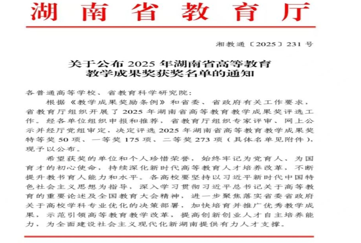 近日,湖南省教育厅正式公布2025年全省高等教育教学成果奖获奖名单,做爱电影