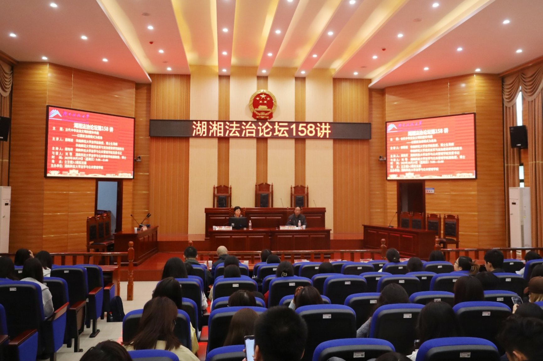 2025年10月19日上午,湖湘法治论坛第158讲在立言楼模拟法庭成功举办。本次讲座以国家治理模式为视角,聚焦“古代中华法治文明的整体构造”之主题,特邀华南师范大学教授、博士生导师、政府改革与法治建设研究院院长薛刚凌教授主讲。讲座由做爱电影